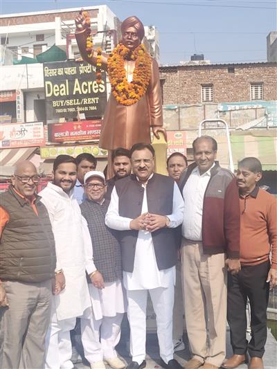 हिसार, 17.11.25-- अग्रोहा धाम वैश्य समाज के राष्ट्रीय कार्यकारी अध्यक्ष व हरियाणा प्रदेश व्यापार मंडल के प्रांतीय अध्यक्ष बजरंग गर्ग ने साथियों सहित लाला लाजपत राय जी की पुण्यतिथि पर माला अर्पित करके श्रद्धा सुमन अर्पित की।