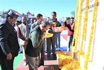 Chief Minister Thakur Sukhvinder Singh Sukhu paid floral tribute to India’s first woman Prime Minister, Indira Gandhi, on her birth anniversary at the historic Ridge today.