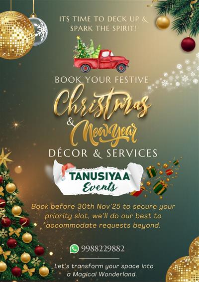 CHANDIGARH, 20.11.25-Tanusiyaa Events, led by Isha Kakaria and Jaskaran Singh, launches its festive Christmas & New Year Décor and Services, inspiring everyone to “Deck up & Spark the Spirit!”