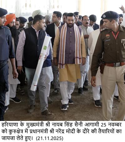 While giving necessary instructions to the officials, Chief Minister Nayab Singh Saini said that to commemorate the 350th Shaheedi diwas of Sri Guru Tegh Bahadur Ji, four holy Nagar Kirtan Yatras are being organized across the state, passing through all districts of Haryana. These Yatras will conclude in Kurukshetra on November 24. On November 25, a samagam will be held in Kurukshetra on the Shaheedi diwas of Sri Guru Tegh Bahadur Ji, with Prime Minister Narendra Modi attending as the chief guest.