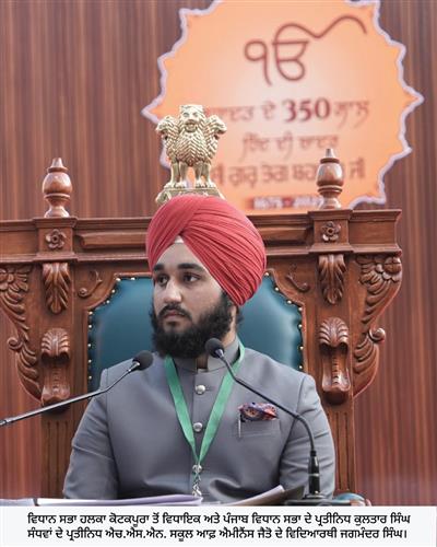 Jagmandar Singh, student of H.S.N. School of Eminence, Jaito, representing Kotkapura MLA and Punjab Vidhan Sabha Speaker Kultar Singh Sandhwan, conducted the proceedings of the House excellently and sorted out arguments amicably between the ruling party and the opposition with great seriousness. During the session, he adjourned the House twice. Daljit Singh, student of School of Eminence, Kiratpur Sahib, representing Sri Anandpur Sahib MLA and Punjab Education Minister Harjot Singh Bains, highlighted about revolution brought out by Punjab government in the education sector.