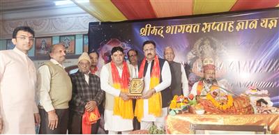 हिसार, 30.11.25-- अग्रोहा धाम में श्री मद् भागवत कथा में भारी संख्या में धर्मप्रेमियों ने भाग लिया। कल की कथा में भगवान श्री कृष्ण जी का जन्म उत्सव होगा। इस अवसर पर अग्रोहा धाम वैश्य समाज के राष्ट्रीय कार्यकारी अध्यक्ष बजरंग गर्ग ने उपस्थित भक्तों को संबोधित करते हुए कहा कि भागवत कथा मन को शुद्ध, मोक्ष प्राप्त करने और जीवन में शान्ति लाने की शिक्षा देती है। भागवत व्यक्ति को सांसरिक दुःखों से मुक्त होने का मार्ग दिखाती है। श्री मद् भागवत कथा एक आध्यात्मिक प्रवचन है। जो जीवन के मूलभूत सिद्धांतों और भक्ति पर केंद्रित है। भागवत ईश्वर की भक्ति और ज्ञान के माध्यम से संसार से मुक्ति का मार्ग दिखाती है। राष्ट्रीय कार्यकारी अध्यक्ष बजरंग गर्ग ने कथा आए हुए अतिथियों को स्मृति चिन्ह देकर व पट्टा पहनाकर सम्मानित किया।कथा वाचक बृजरत्न श्री त्रिलोकी शास्त्री महाराज जी ने बताया की भागवत से पितरों को शान्ति एवं मुक्ति मिलती है।