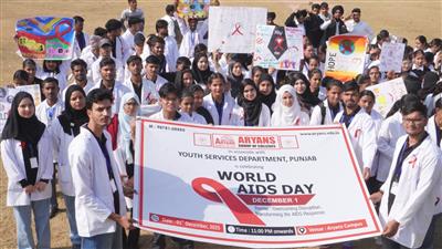 Mohali, December 1stAryans Group of Colleges, Rajpura, Near Chandigarh, in association with the Red Ribbon Club, Youth Services Department, Punjab, today organized a series of activities to mark World AIDS Day (Celebrated worldwide on 1st Dec) under the theme “Overcoming Disruption, Transforming the AIDS Response.”