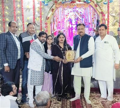 बजरंग गर्ग ने अग्रोहा धाम में आए हुए अतिथियों को महाराजा अग्रसेन जी का स्मृति चिन्ह देखकर सम्मानित किया।पूजा सांवरिया, केशव गर्ग व भावना के टीम द्वारा भव्य भजनों की बौछार से भक्त झूमते रहे।