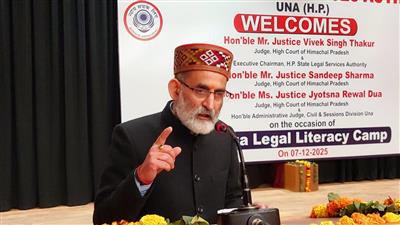 ऊना, 7 दिसंबर. हिमाचल प्रदेश उच्च न्यायालय के न्यायाधीश एवं राज्य विधिक सेवा प्राधिकरण के कार्यकारी अध्यक्ष न्यायमूर्ति विवेक सिंह ठाकुर ने सभी नागरिकों से नशा मुक्त और सुसंस्कारित समाज के निर्माण में योगदान का आह्वान किया। उन्होंने कहा कि संस्कारयुक्त और जागरूक समाज का निर्माण प्रत्येक नागरिक के आत्म-संकल्प और व्यक्तिगत आचरण से ही संभव है।