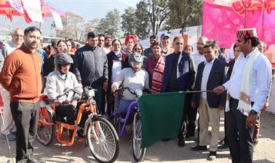 उपायुक्त कांगड़ा हेमराज बैरवा ने दिव्यांगजनोें को बैटरी चालित ट्राईसाइकिलें वितरित कीं।