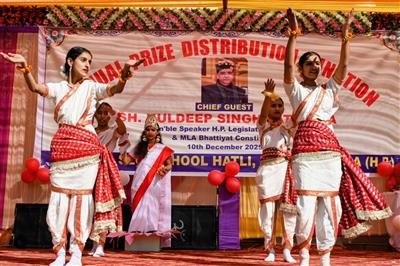 चंबा 10 दिसंबर 2025,राजकीय वरिष्ठ माध्यमिक विद्यालय हटली में वार्षिक पारितोषिक वितरण समारोह हर्षोल्लास के साथ आयोजित किया गया। समारोह में पधारे मुख्य अतिथि विधानसभा अध्यक्ष कुलदीप सिंह पठानिया का विद्यालय प्रशासन, स्कूली छात्र-छात्राओं तथा स्थानीय जनता ने गर्म जोशी से स्वागत किया। इस अवसर पर स्थानीय विधालय के विधार्थियों ने रंगारंग सांस्कृतिक कार्यक्रम भी प्रस्तुत किया। मुख्य अतिथि द्वारा शिक्षा, खेल तथा अन्य गतिविधियों में उत्कृष्ट प्रदर्शन करने वाले छात्र छात्राओं को पुरस्कृत किया।