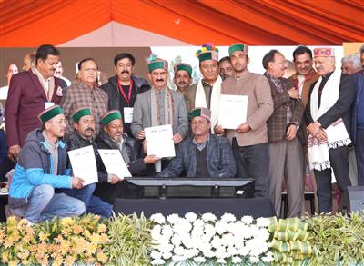 Sh. Sukhu provided financial assistance of Rs. 10.38 lakh to 10 beneficiaries of Kangra, Mandi, Hamirpur and Una districts under Mukhyamantri Carp Matsyapalan Yojana. The beneficiaries of the Mukhyamantri Madhu Mandav Vikas Yojana in Mandi district was given Rs. 1.76 lakh, while support was also extended under the Himachal Pushp Kranti Yojana. Five beneficiaries from Kinnaur district were issued certificates granting them ownership rights over their traditional forest land under the Forest Rights Act.