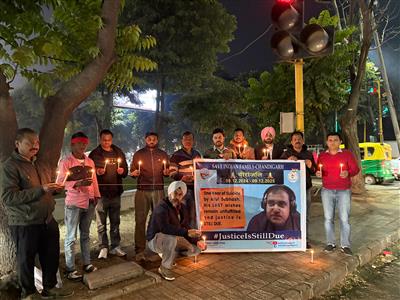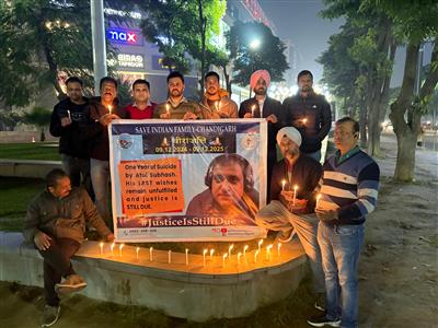 चण्डीगढ़, 12.12.25- :सेव इंडियन फैमिली, (एसआईएफ), चण्डीगढ़ चैप्टर ने अतुल सुभाष की दुखद आत्महत्या की पहली बरसी पर आज एक शांतिपूर्ण मोमबत्ती जलाकर वीरांजलि का आयोजन किया। अतुल सुभाष की मृत्यु ने देशव्यापी विरोध प्रदर्शनों को जन्म दिया था और लंबे समय से चले आ रहे विवादों में फंसे पुरुषों पर पड़ने वाले भावनात्मक और कानूनी दबावों को उजागर किया था।