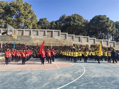 विद्यालय के प्रांगण में आयोजित इस भव्य कार्यक्रम का शुभारंभ मुख्य अतिथि श्री विवेक शर्मा, जिला खेलकूद अधिकारी द्वारा ध्वजारोहण एवं मशाल प्रज्वलन के साथ किया गया। इसके उपरांत विद्यार्थियों द्वारा आकर्षक मार्च पास्ट प्रस्तुत किया गया, जिसने उपस्थित सभी अतिथियों एवं अभिभावकों का मन मोह लिया।