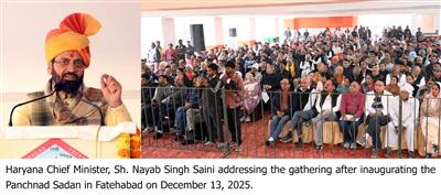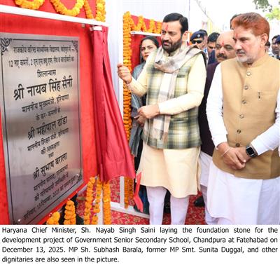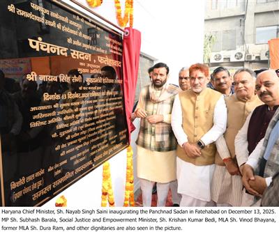 Chandigarh, December 13 — To accelerate the overall development of Fatehabad district, Haryana Chief Minister Sh. Nayab Singh Saini on Saturday inaugurated and laid foundation stones of several important projects related to basic amenities, education, and infrastructure.