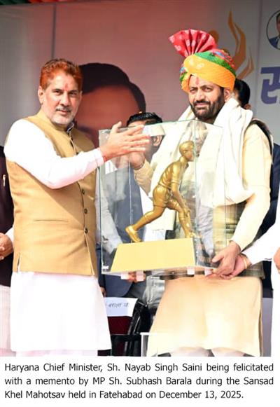 Chandigarh, December 13- Haryana Chief Minister, Sh. Nayab Singh Saini on Saturday said that the ‘Sansad Khel Mahotsav’ is not merely a sporting competition but a comprehensive health movement that motivates youth to adopt an active and disciplined lifestyle. Strengthening the Khelo India and Fit India initiatives at the grassroots level, the ‘Sansad Khel Mahotsav’ has evolved into a people’s movement aimed at building a healthy, self-reliant and disciplined generation. Reflecting Prime Minister, Sh. Narendra Modi’s vision of transforming sports into a mass movement, the ‘Sansad Khel Mahotsav’ has proved to be an effective platform for identifying hidden sporting talent in rural areas and enabling young athletes to reach national and international arenas.