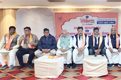 हिसार, 14.12.25-- स्वदेशी जागरूक मंच व हरियाण प्रदेश व्यापार मंडल के तत्वाधान में व्यापारी प्रतिनिधि सम्मेलन महाराजा अग्रसेन भवन हिसार में हुआ। जिस कार्यक्रम की अध्यक्षता हरियाण प्रदेश व्यापार मंडल के प्रांतीय अध्यक्ष बजरंग गर्ग ने की।