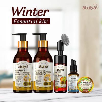 NEW DELHI, 15.12.25-atulya presents its Winter Essential Kit, a thoughtfully curated range created to protect and nourish skin and hair during the colder months. This all-in-one kit includes Keratin & Wheat Protein Shampoo and Conditioner, Vitamin C Foaming Face Wash, Hyaluronic Acid Face Serum, and a rich Cocoa Butter Chocolaty Lip Balm.