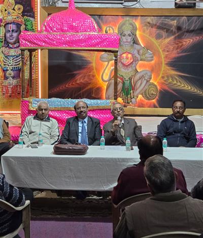 चण्डीगढ़, 23.12.25 : हिंदू पर्व महासभा, चण्डीगढ़ की बैठक संस्था के अध्यक्ष बीपी अरोड़ा की अगुआई में प्राचीन श्री हनुमान मंदिर, सेक्टर 32 ए में हुई जिसमें शहर के सभी मंदिरों के पदाधिकारियों ने भाग लिया। अरोड़ा ने बताया कि अयोध्या में मर्यादा पुरुषोत्तम भगवान श्री राम जी की मूर्ति के द्वितीय स्थापना दिवस जो कि देसी तिथि के अनुसार पौष माह की शुक्ल पक्ष की द्वादशी 31.12.2025 को है, उस दिन शहर के सभी मंदिरों में दिवाली के जश्न जैसा होना चाहिए। शहर के सभी मंदिर दिवाली की तरह सजेंगे। पिछले वर्ष की भांति इस बार भी हिंदू पर्व महासभा द्वारा सभी मंदिरों के सहयोग से एक विशाल और भव्य सामूहिक कार्यक्रम "एक शाम प्रभु श्री राम के नाम" (लाइट एंड साउंड प्रोग्राम) सेक्टर 32 ए के प्राचीन श्री हनुमान मंदिर में 17 जनवरी 2026 दिनांक शनिवार को शाम 6 बजे से लेकर 9 तक किया जाएगा, जिसमें मर्यादा पुरुषोत्तम भगवान श्री राम की लीलाओं का मंचन संवाद ग्रुप की डायरेक्टर रजनी बजाज एवं उनकी टीम के द्वारा किया जाएगा व उसके बाद सभी भक्तों एवं श्रद्धालुओं के लिए स्वादिष्ट भंडारे का आयोजन किया जाएगा।