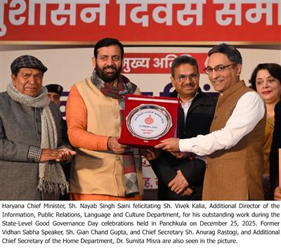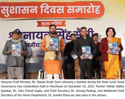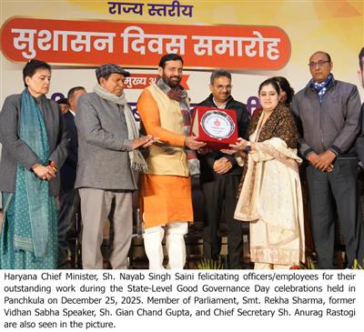 Chandigarh, December 25 - Reiterating the Haryana Government’s firm commitment to transparent, accountable and citizen-centric administration, Chief Minister, Sh. Nayab Singh Saini said that good governance is the strongest pillar for building a Developed India and a Developed Haryana.