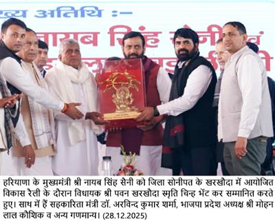 Chandigarh, December 28 - Chief Minister Sh. Nayab Singh Saini said that seeing India move rapidly on the path of development in line with the vision of Viksit Bharat 2047, the entire world is looking at Prime Minister Narendra Modi’s work with renewed hope and optimism. Major achievements in the field of science and continuous innovations have impressed countries across the world. Today, the passion to do something new is clearly visible among the youth of the country.
