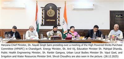 Chandigarh, December 28 —A meeting of the High Powered Works Purchase Committee (HPWPC) was held on Saturday at Haryana Niwas under the chairmanship of Haryana Chief Minister Sh. Nayab Singh Saini. During the meeting, proposals related to important infrastructure and development projects of various departments were deliberated upon, and key decisions regarding procurement of services and works were taken.