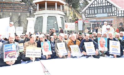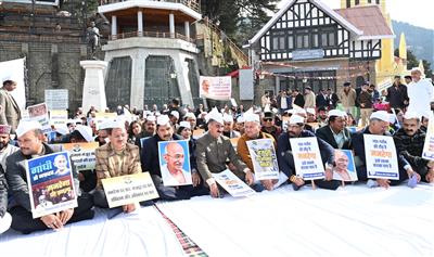 Chief Minister Thakur Sukhvinder Singh Sukhu on Monday, along with members of his Cabinet, staged a protest near the statue of Mahatma Gandhi at the Ridge, Shimla, opposing the Central Government’s decision to discontinue the MNREGA scheme.
