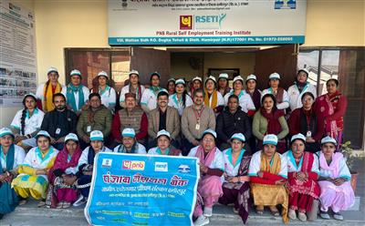 हमीरपुर 30 दिसंबर। मट्टनसिद्ध स्थित पंजाब नेशनल बैंक ग्रामीण स्वरोजगार प्रशिक्षण संस्थान (आरसेटी) हमीरपुर द्वारा महिलाओं के लिए आयोजित 14 दिवसीय प्रशिक्षण शिविर मंगलवार को संपन्न हो गया। इस शिविर में 27 महिलाओं को जूट के उत्पाद बनाने का प्रशिक्षण प्रदान किया गया।