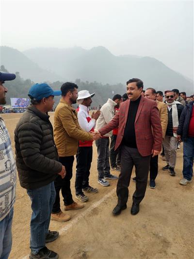 शिलाई, 31.12.25- भाजपा के पूर्व प्रदेश अध्यक्ष एवं सांसद श्री सुरेश कश्यप ने शिलाई विधानसभा क्षेत्र के चांदनी में आयोजित स्वर्गीय संजय ठाकुर मेमोरियल खेल प्रतियोगिता के समापन समारोह में भाग लिया। इस अवसर पर शिलाई विधानसभा के पूर्व विधायक श्री बलदेव तोमर भी विशेष रूप से उपस्थित रहे। कार्यक्रम में स्थानीय युवाओं और खेल प्रेमियों में भारी उत्साह देखने को मिला।