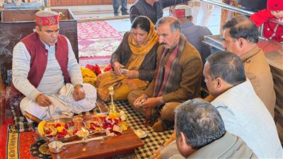 SHIMLA, 01.01.26 Chief Minister Thakur Sukhvinder Singh Sukhu along with his wife Kamlesh Thakur, who is also MLA from Dehra assembly constituency, visited the Tara Devi temple near Shoghi to pay obeisance and seek blessings of the divine Goddess. They also prayed for peace, happiness and prosperity for the people of the State.
