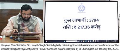 Chandigarh, January 2 — Haryana Chief Minister, Sh. Nayab Singh Saini on Friday released an amount of Rs. 217.36 crore directly into the bank accounts of 5,794 beneficiaries under the Deen Dayal Upadhyay Antyodyay Parivar Suraksha Yojana-I (DAYALU). With this, a total of Rs. 1,881.355 crore has so far been disbursed to 49,998 beneficiaries under the scheme.