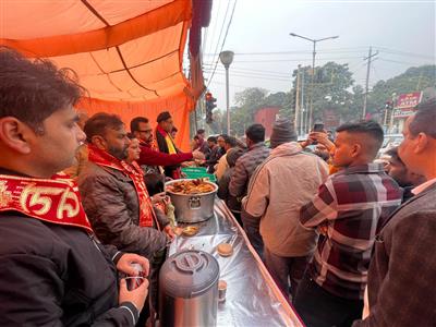 चण्डीगढ़, 02.01.06 : जनसेवा वेलफेयर सोसाइटी, चण्डीगढ़ की ओर से नए साल के पहले दिन सेक्टर 22 में चाय और ब्रेड पकोड़े का लंगर लगाया गया जिसमें शहर की तीनों प्रमुख पार्टियों के नेताओं ने लंगर बरतने की सेवा की। संस्था के वाइस प्रेसिडेंट सुनील शर्मा ने बताया कि भाजपा के वरिष्ठ नेता संजय टंडन, कांग्रेस के स्थानीय अध्यक्ष एचएस लक्की व आप पार्टी के नेता एवं एरिया पार्षद दमनप्रीत बादल ने लंगर सेवा में बढ़-चढ़ कर सेवा कार्य में हाथ बंटाया। इस दौरान हजारों की संख्या में लोगों ने लंगर का आनंद लिया। इस मौके पर जनसेवा वेलफेयर सोसाइटी के अध्यक्ष अमित सिंगला और प्रेसिडेंट अश्विनी सिंगल भी उपस्थित रहे।