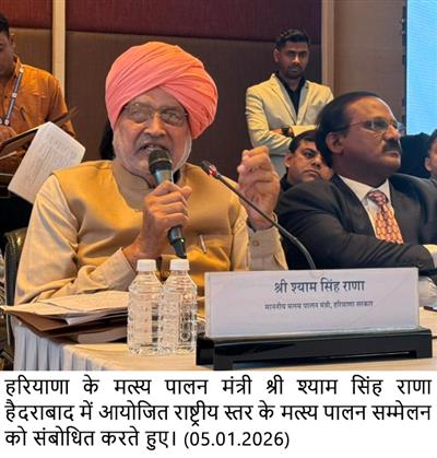Chandigarh, January 5 - Haryana Fisheries Minister Sh. Shyam Singh Rana highlighted the rapid growth of inland fisheries in the state, stating that Haryana has emerged as one of the country’s leading fish-producing landlocked states, with a total production of 2.04 lakh metric tonnes of fish from 23,850 hectares of water area.