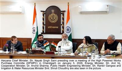 Chandigarh, January 5 - A significant meeting of the High-Powered Purchase Committee (HPPC) and High-Powered Works Purchase Committee (HPWPC) was held today at Haryana Niwas under the chairmanship of Haryana CM Sh. Nayab Singh Saini. During the meetings, detailed deliberations were held on proposals related to major infrastructure and development projects of various state departments, and several important decisions regarding procurement of works and services were taken.