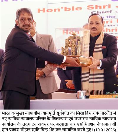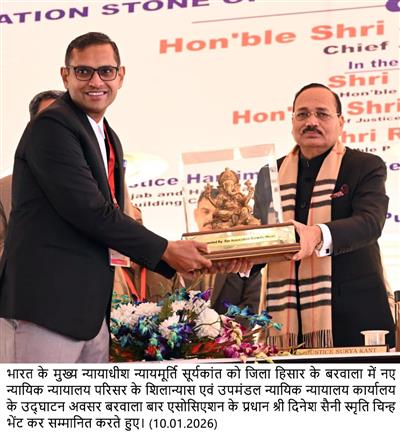 Chandigarh, January 10 — The Hon’ble Chief Justice of India, Justice Surya Kant, stated that a Sessions Division will be established soon in Hansi. After Hansi was declared the 23rd district of the State, this will provide another important facility for the residents of Hansi. The Sessions Division will play a significant role in strengthening access to justice for the general public.