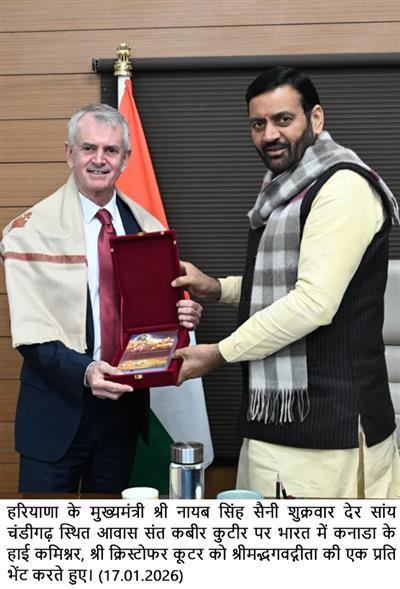 Chandigarh, January 17- Underscoring Haryana’s growing global engagement and its commitment to forging meaningful international partnerships, Chief Minister, Sh. Nayab Singh Saini on Friday held a meeting with a high-level delegation from British Columbia, Canada, led by the Premier Mr. David Eby. The interaction focused on exploring opportunities for collaboration across key sectors and strengthening State–Province level cooperation between Haryana and British Columbia. During this Chief Principal Secretary to CM Sh. Rajesh Khullar, Commissioner and Secretary, Foreign Cooperation Department Smt. Amneet P. Kumar also remained present.