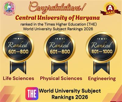 Prof. Suneel Kumar, Registrar of the University said that the Central University of Haryana’s performance in the Times Higher Education World University Subject Rankings 2026 reflects our consistent efforts to strengthen academic quality and research excellence. These rankings in Life Sciences, Physical Sciences, and Engineering reaffirm our commitment to innovation, interdisciplinary learning, and global academic standards.