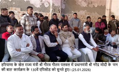 Chandigarh, January 25 — Haryana’s Minister of State for Sports Sh. Gaurav Gautam today participated in Prime Minister’s Mann Ki Baat programme organised at Baghel Chaupal, in Sheikhpura Mohalla of Palwal, and listened to the inspiring thoughts of Prime Minister Sh. Narendra Modi.