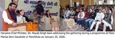 Earlier, Chief Minister Sh Nayab Singh Saini, accompanied by his wife Smt. Suman Saini, served cows at the Mata Mansa Devi Gaudham by feeding them fodder and jaggery and seeking their blessings. He also performed Gau Pujan (cow worship) on the occasion.