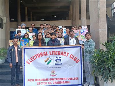 चण्डीगढ़, 25.01.26- : पोस्ट ग्रेजुएट गवर्नमेंट कॉलेज, सेक्टर-46, चंडीगढ़ के चुनावी साक्षरता क्लब ने राष्ट्रीय मतदाता दिवस मनाया। इस अवसर पर प्रधानाचार्य प्रो. निशा अग्रवाल ने अपने संबोधन में एक जीवंत, समावेशी और मजबूत लोकतंत्र के निर्माण के लिए युवाओं की सक्रिय भागीदारी को अत्यंत महत्वपूर्ण बताया। उन्होंने विद्यार्थियों से अपने मतदान के अधिकार का प्रयोग जिम्मेदारीपूर्वक और बिना किसी भय या पूर्वाग्रह के करने का आग्रह किया, और इस बात पर बल दिया कि राष्ट्र के भविष्य को आकार देने में प्रत्येक वोट मायने रखता है। प्रधानाचार्य प्रो. अग्रवाल ने विद्यार्थियों को जागरूक नागरिक के रूप में उनकी भूमिका के प्रति सचेत किया और लोकतांत्रिक मूल्यों और सुशासन को मजबूत करने में नैतिक मतदान प्रथाओं के महत्व पर प्रकाश डाला। विद्यार्थियों को सक्रिय रूप से शामिल करने के लिए, शपथ ग्रहण समारोह, पोस्टर बनाना, नारा लेखन और निबंध लेखन प्रतियोगिता जैसी विभिन्न गतिविधियाँ आयोजित की गईं। विद्यार्थियों ने उत्साहपूर्वक भाग लिया और जिम्मेदार और जागरूक मतदाता बनने की अपनी प्रतिबद्धता व्यक्त की। प्रोफेसर निशा अग्रवाल ने आयोजन समिति, डॉ. जी.सी. सेठी, सुश्री ज्योति और चुनावी साक्षरता क्लब के सदस्यों के सफल आयोजन के लिए किए गए समर्पित प्रयासों की सराहना की।