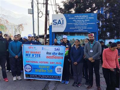 धर्मशाला, 25 जनवरी: राष्ट्रीय मतदाता दिवस-2026 के अवसर पर युवा कार्यक्रम एवं खेल मंत्रालय, भारत सरकार के तत्वावधान में माय भारत, कांगड़ा तथा भारतीय खेल प्राधिकरण (साई), राष्ट्रीय उत्कृष्टता केंद्र, धर्मशाला के संयुक्त सहयोग से आज एक भव्य मतदाता जागरूकता रैली का आयोजन किया गया।