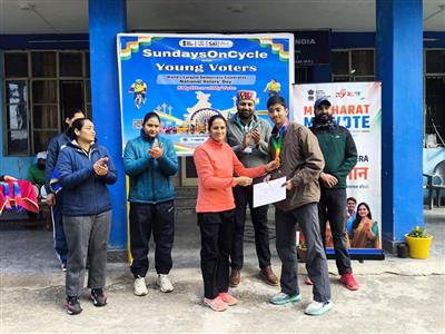 इस अवसर पर 23 नए मतदाताओं को पदक और बैज देकर सम्मानित भी किया गया। इसके अलावा पालमपुर में नव दृष्टि युवा क्लब में भी नए मतदाताओं के लिए सांस्कृतिक कार्यक्रम और जागरूकता रैलियां आयोजित की, जिसमें स्थानीय पंचायती राज संस्थाओं के सदस्य उपस्थित थे।