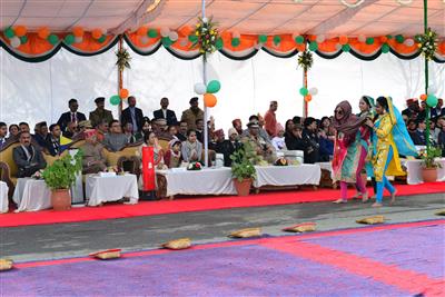 Cultural performances added vibrancy to the programme. Artists from the North Zone Cultural Centre, Patiala, presented folk dances from Jammu and Kashmir, Haryana and Uttarakhand. The Eklavya Kala Manch of Himachal Pradesh Police, 1st IRBN Bangarh, Una, staged a powerful street play on the theme of 'Drug-Free Himachal' to spread awareness about the ill effects of consumption and illegal smuggling of narcotics substance, especially Chitta. Artists from Hamirpur and Shimla enthralled the audience with their captivating performances.