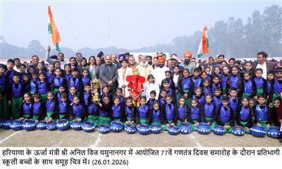 On this occasion, Sh. Anil Vij extended heartfelt Republic Day greetings and best wishes to the families of freedom fighters, martyrs’ families, senior citizens, mothers and sisters, youth, children, administrative officers, police personnel, NCC, NSS, school students, journalists and eminent citizens of the district. The Cabinet Minister announced Rs. 21 lakh for distribution of sweets and gifts to participating students and also declared a holiday on January 27.