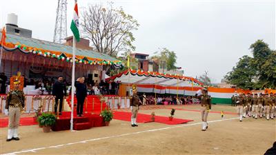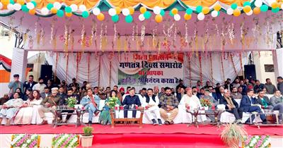 ऊना, 26 जनवरी। भारत के 77वें गणतंत्र दिवस पर ऊना जिला की धरती देश भक्ति गीतों से गूंज उठी। इस उपलक्ष्य पर राजकीय बाल वरिष्ठ माध्यमिक पाठशाला ऊना के मैदान में आयोजित जिला स्तरीय समारोह में तकनीकी शिक्षा एवं नगर एवं ग्राम नियोजन मंत्री राजेश धर्माणी ने राष्ट्रीय ध्वज फहराया। इस दौरान उन्होंने पुलिस व होमगार्ड की महिला तथा पुरुष टुकड़ियों और एनसीसी, एनएसएस, प्रशिक्षित आपदा मित्र, स्काउट्स एंड गाइड्स के कैडेट्स द्वारा निकाले गए आकर्षक मार्च पास्ट की सलामी ली।