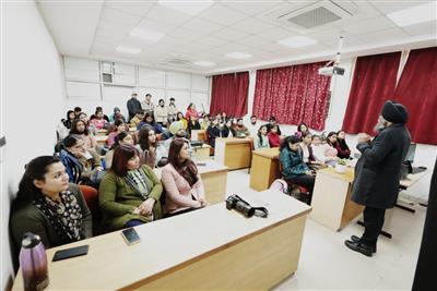 During the two-day programme, students were introduced to various stages of film-making, including idea generation, script conceptualisation, shot composition, camera angles, lighting, sound and post-production basics. Special emphasis was laid on innovative film-making techniques, creative direction styles and the use of photography to enhance visual impact. Mr. Singh also discussed the importance of storytelling, aesthetics and originality in contemporary cinema and digital media content.