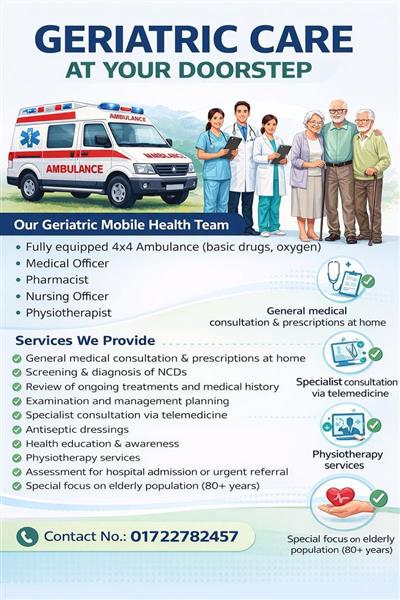 The initiative offers home-based medical consultations and prescriptions, screening and documentation of non-communicable diseases (NCDs), specialist tele-consultations, antiseptic dressings, physiotherapy support, health awareness, and assessment for urgent referral or hospital admission, wherever required.