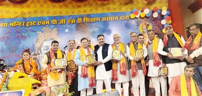 शिवालय मंदिर ट्रस्ट के प्रधान बजरंग गर्ग ने मुख्य अतिथि हिसार लोकसभा सांसद भाई जय प्रकाश, हरियाणा के पूर्व मंत्री डॉक्टर कमल गुप्ता, प्रमुख समाजसेवी जगदीश जिंदल, ललित शर्मा, अक्षय मलिक, ऋषि राज गर्ग, डॉ नकुल गुप्ता, कुमार मुकेश, प्रवीण गर्ग को स्मृति चिन्ह देकर विशेष सम्मान किया। बजरंग गर्ग ने कहा कि कथा में आज भगवान श्री कृष्ण जी एवं माता रुक्मणी विवाह उत्सव में धर्म प्रेमी बाराती बनकर काफी देर तक नाचते-गाते रहे। इस अवसर पर छप्पन भोग व दो सवामणि का प्रसाद लगाया गया। कथा में हजारों भक्तों ने परिवार सहित भाग लिया। बजरंग गर्ग ने कहा कि शिवालय मंदिर ट्रस्ट में 16 फरवरी को विशाल भंडारा व हवन का कार्यक्रम रहेगा।