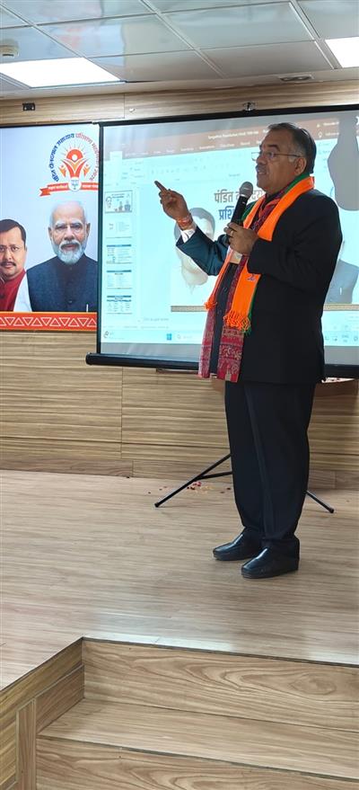 बैठक को संबोधित करते हुए भाजपा के राष्ट्रीय महामंत्री तरुण चुग ने पीपीटी प्रस्तुति के माध्यम से प्रशिक्षण महाअभियान की रूपरेखा, उद्देश्य और कार्यप्रणाली पर विस्तार से प्रकाश डाला। उन्होंने कहा कि पंडित दीनदयाल उपाध्याय के एकात्म मानववाद और अंत्योदय के सिद्धांत भारतीय जनता पार्टी की विचारधारा का मूल आधार हैं। यह प्रशिक्षण अभियान केवल संगठनात्मक कार्यक्रम नहीं, बल्कि वैचारिक सशक्तिकरण का महाअभियान है, जिसके माध्यम से प्रत्येक कार्यकर्ता को राष्ट्र प्रथम की भावना से ओत-प्रोत किया जाएगा।