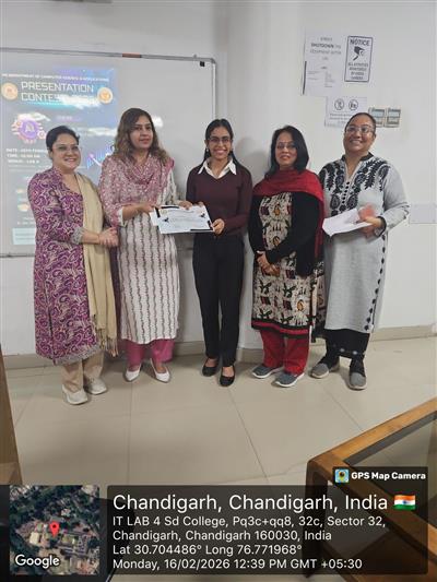 Chandigarh, 16th Feb, 2026: Phoenix - The ICT Club, Department of Computer Science and Applications (DCSA), GGDSD College Chandigarh has successfully organized a Innovative Presentation Contest, centering on the intersection of two of the most critical fields in modern technology “Artificial Intelligence and Green Computing” on 16th Feb, 2026 under the directions of Dr. Monika Sethi, coordinator, Phoenix Club.