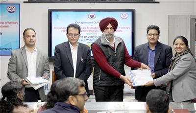 Ludhiana 19 February 2026-The 21 CAFT training programme entitled Amalgamation of Conventional and Advanced Diagnostic Approaches in Veterinary Pathology: A Key to Precise Diagnosis in an Evolving Scenario in Veterinary Pathology sponsored by Indian Council of Agricultural Research, New Delhi was successfully completed at Guru Angad Dev Veterinary and Animal Sciences University (GADVASU). The training was held from January 28 to February 17, 2026. The training drew enthusiastic participation from trainees across India. Participants from 11 states attended the programme, where they received comprehensive exposure to both conventional and advanced diagnostic techniques in veterinary pathology. Dean, Post Graduate studies and Dean, COVS, Ludhiana presided over the valedictory function where they released the compendium and distributed the completion certificate to the participants.