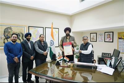 Chandigarh 21st February -A delegation of the National Human Rights and Anti-Corruption Force (NHRACF), Chandigarh, led by its President, Kamaljit Singh Panchhi, along with Anil Vohra (Chairman), Diljit Thukral (Vice President), and Harjit Singh (Secretary), met Gulab Chand Kataria, Hon’ble Governor of Punjab and Administrator of Chandigarh, to unveil an awareness poster aimed at educating the public and discouraging cash donations to beggars.