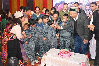 कार्यक्रम के दौरान शिक्षा मंत्री ने डे केयर सेंटर भंगरोटु के दिव्यांग बच्चों के साथ केक भी काटा।