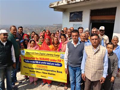 हमीरपुर 27 फरवरी। कांगड़ा केंद्रीय सहकारी बैंक की टिक्कर खातरियां शाखा ने नाबार्ड के सहयोग से ग्राम पंचायत टिक्कर बुहला के गांव डुंगी में वित्तीय साक्षरता शिविर आयोजित किया।